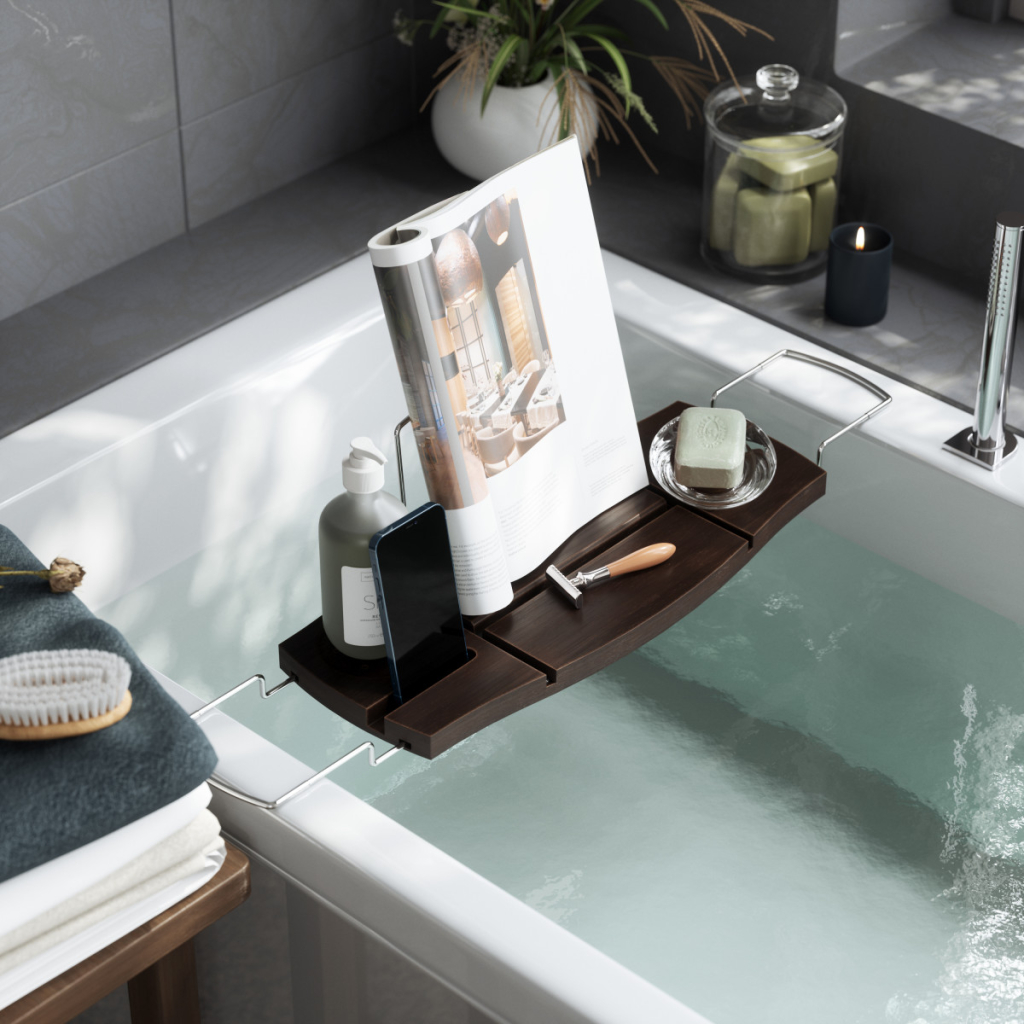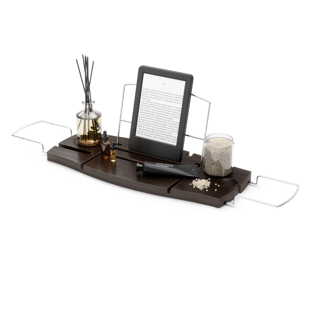 Objevte Umbra Aquala – koupelnovou poličku, která promění vaše koupání v dokonalý relaxační rituál. Díky chytrému designu máte vše potřebné po ruce: knihu, tablet, telefon, svíčku i sklenku vína.