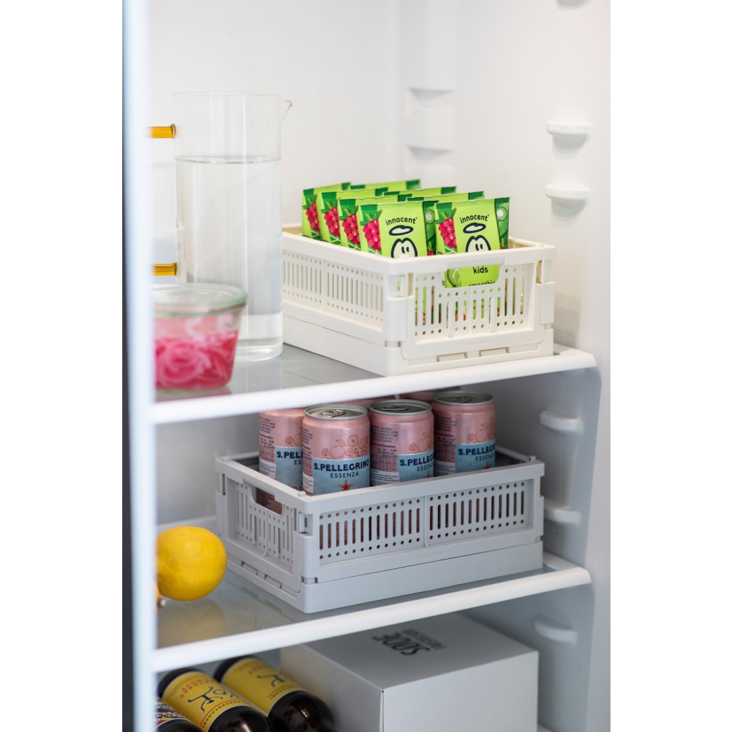 Vyrobeno pro skladování. Nové ekologické skládací přepravky jsou vyrobeny ze 100% recyklovaného plastu, který neobsahuje škodlivé látky. Kolekce Made Crate se skládá z 20 krásných pastelových barev.
