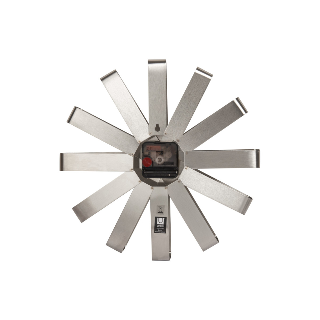 Hodiny Ribbon jsou vybaveny tichým Quartz strojkem s plynulým chodem, který zajišťuje přesný a bezúdržbový provoz bez rušivého tikání. Stačí jedna AA baterie (není součástí balení) a hodiny jsou připraveny k použití – ideální do kuchyně, obývacího pokoje, kanceláře nebo pracovny.